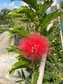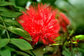 🌺 Bright red, fluffy powder-puff flowers blooming in clusters