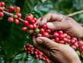 The plant produces small, fragrant white flowers that resemble jasmine and bloom in clusters. These blossoms eventually develop into green berries, which gradually ripen into bright red cherries. Inside each cherry are the coffee beans, typically two per fruit, which are harvested, processed, and roasted to create coffee.