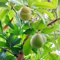 The Elephant Apple is a distinctive, large, round fruit, technically an aggregate of carpels enclosed by persistent, fleshy sepals.