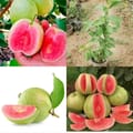 The plant produces medium-to-large round fruits with yellowish-green skin and vibrant pinkish-red flesh. The fruits are rich in vitamin C, antioxidants, and fiber, making them excellent for fresh eating and juices.