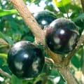 The Jabuticaba Oblongata (Plinia oblongata) is an evergreen fruit tree known as the Brazilian Grapetree, a member of the Myrtaceae family. It is distinctively known for 'cauliflory', the unusual trait where its fruits grow directly on the trunk and main branches. This is a grafted plant, which significantly shortens the time to first fruiting, often allowing the tree to bear fruit in 2-4 years.