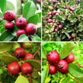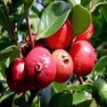 Red Strawberry Guava (Psidium cattleyanum), a Brazilian-origin dwarf evergreen shrub prized for small cherry-sized 2-4 cm round fruits with glossy deep crimson skin enclosing aromatic juicy pink flesh bursting with strawberry-passionfruit-rose floral sweetness, thrives as ornamental/edible hedge across Indian tropics from Kerala hills to Maharashtra gardens. Layering/grafted plants ensure ultra-compact 2-6m bushy multi-trunked growth ideal balcony pots/hedges, continuous year-round fruiting multiple flushes, self-fertile prolific yields while adapting full sun/partial shade acidic soils with superior cold tolerance versus common guava. The 1.5–3 feet sapling produces anytime ripe fruits perfect urban foraging with invasive potential requiring containment.